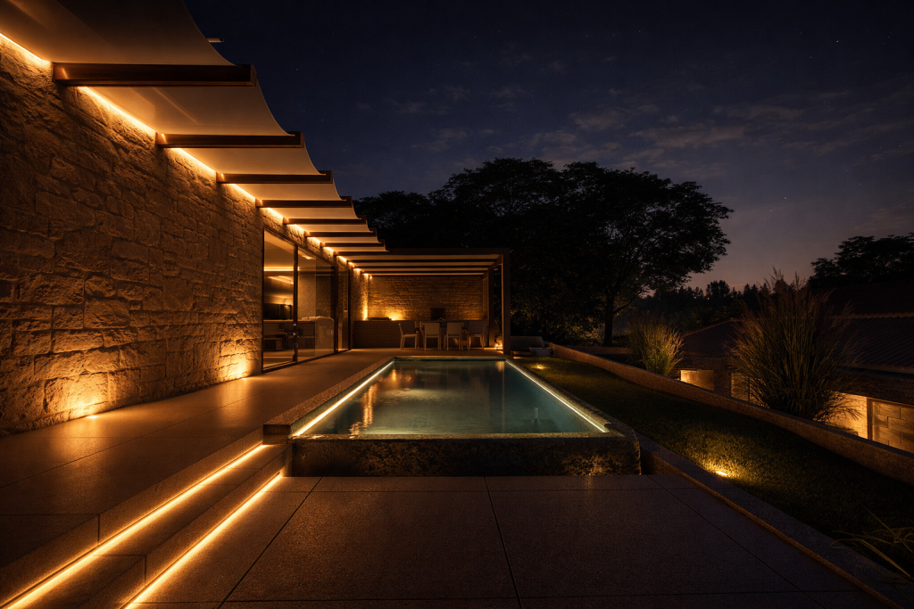 Eine Pergola mit leichter Beschattung schützt vor der Sonne und schafft eine angenehme, schattige Umgebung, die das Genießen jedes Raumes optimal unterstützt. Das Projekt wurde zur Baugenehmigung eingereicht, und der Baubeginn ist für 2025 geplant.