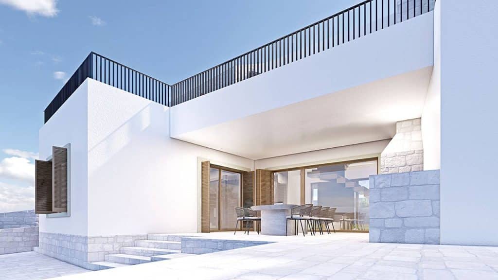 Der wahre Zauber entfaltet sich jedoch im ersten Stock. Dort bieten die großzügigen Terrassen der Schlafzimmer noch weitläufigere und beeindruckendere Ausblicke und schaffen eine tiefe Verbindung zur Natur und der umliegenden Landschaft. Jede Terrasse verwandelt sich in einen Ort der Ruhe, an dem man die zeitlose Schönheit Dalmatiens genießen kann.