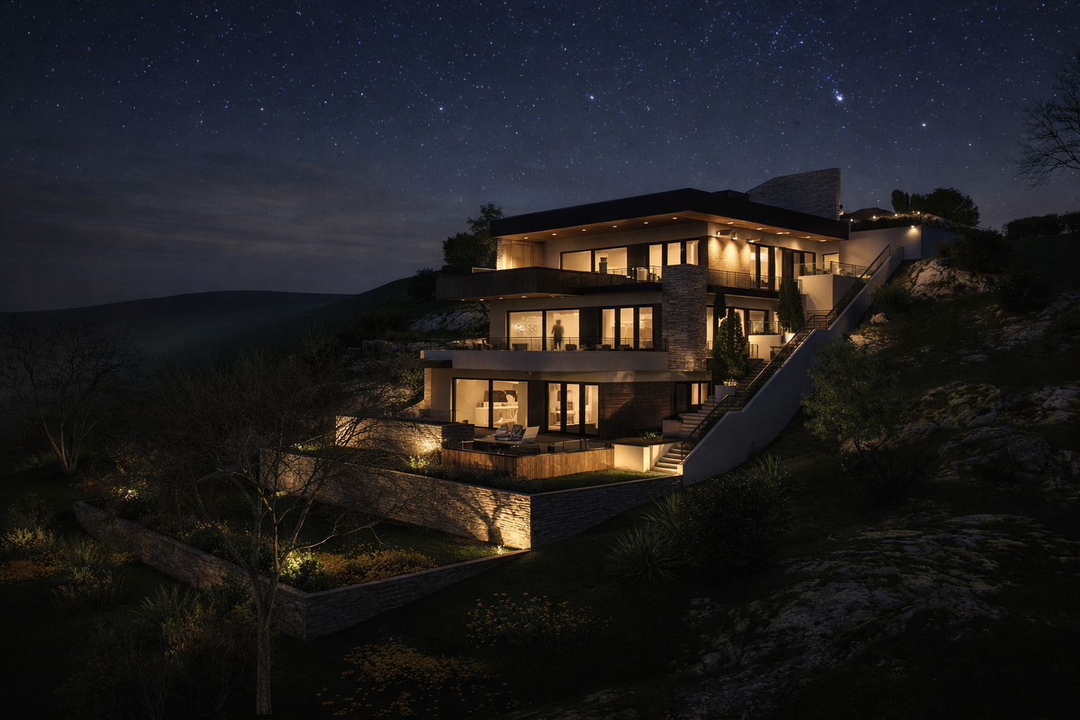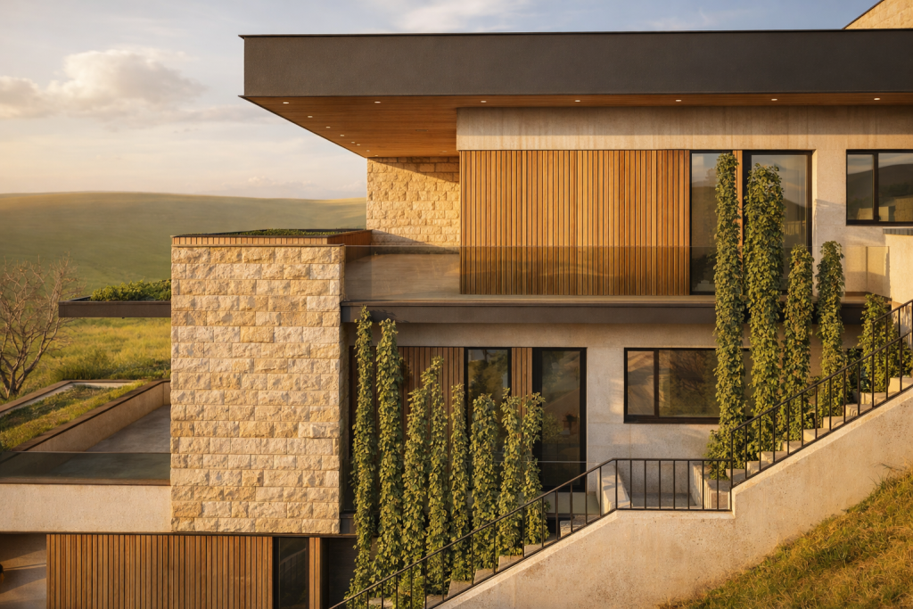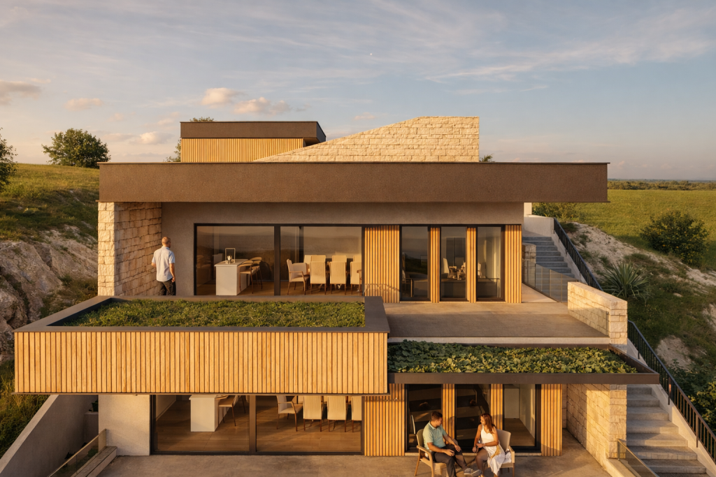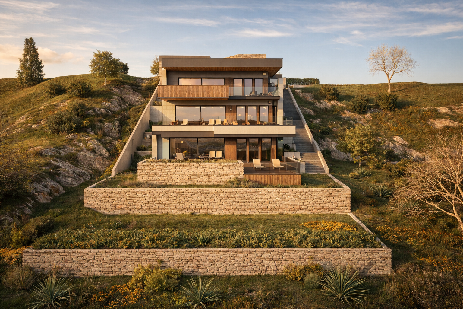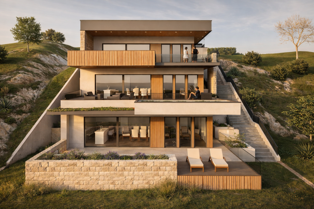 Dieses Projekt befindet sich auf einem sanften Hang und bietet nicht nur bezaubernde Ausblicke auf die umliegende Natur, sondern auch zusätzliche Privatsphäre. Dank umfangreicher geomechanischer Untersuchungen und der Anwendung modernster Bautechniken werden wir die Stabilität und Sicherheit des Gebäudes gewährleisten.